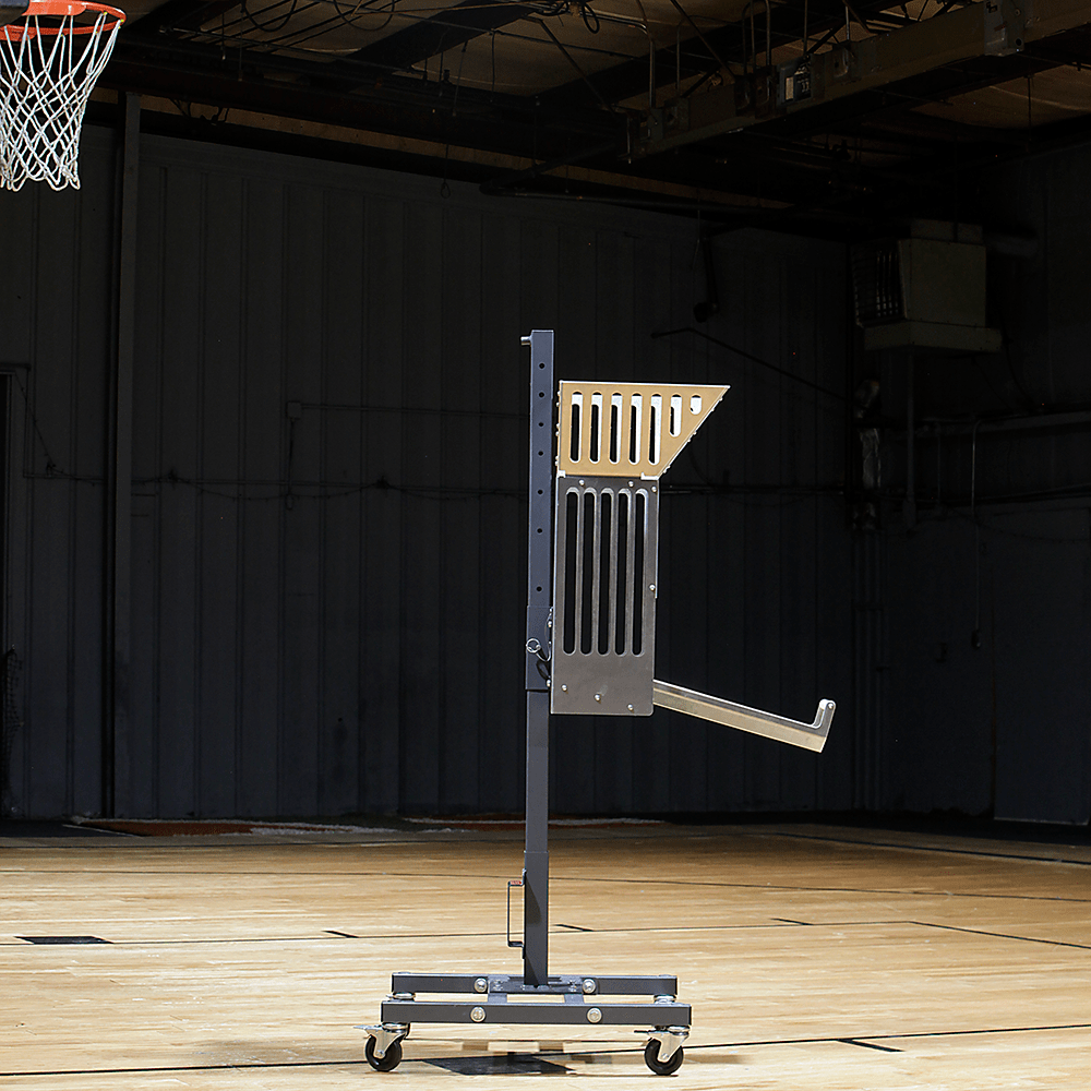 Designed as a vertical ball rack, it holds up to 5 balls, channeling them down the Extension Arm to the Ball Stop, where they’re delivered directly to the athlete for rapid-rep training.